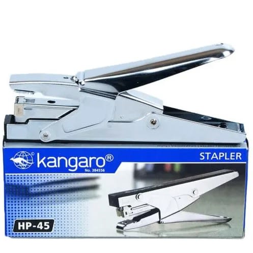 The HP 45 Kangaro stapler, half strip all metal construction, with plastic cover is suitable for home and office use. It has a mechanism for quick loading.