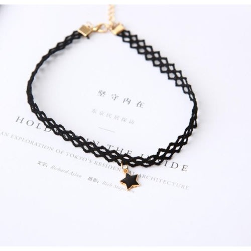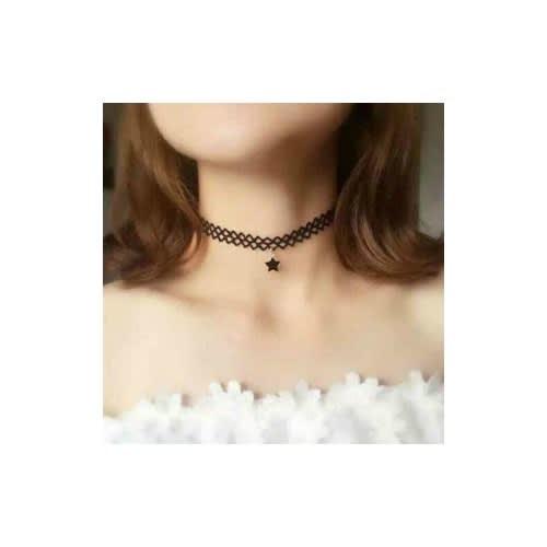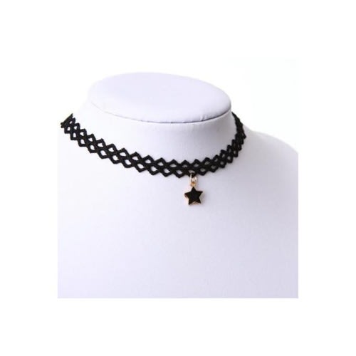 This beautiful choker comes with a multi strap neck tie. It features a double detail pendant and is suitable for day or night. Remember to coat the metal parts with nail varnish to avoid tarnish due to sweat or sunshine. Limited stock and very affordable.