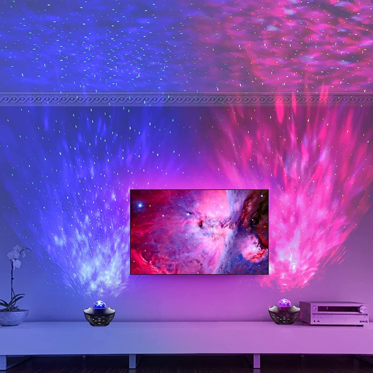 Features:【Star Theater SE Special Edition + LED Wave projector】With small night lights of 10 colors,the projector can create the effect of colorful starry sky and ocean.