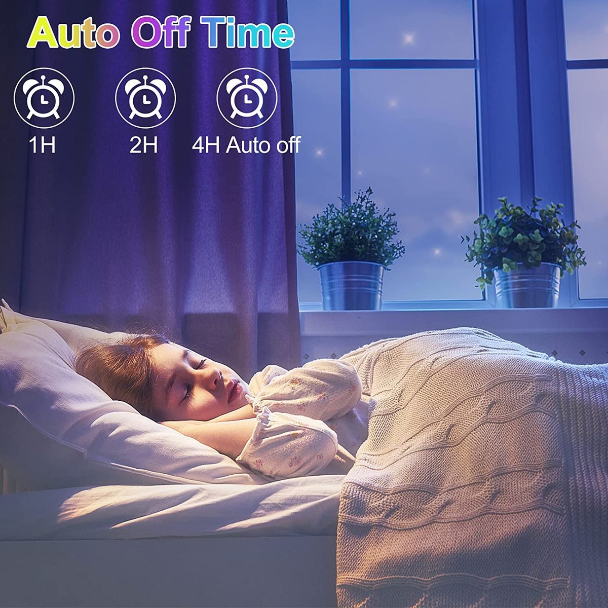 【Timer & Remote control】Automatic stop can be set, with the built-in 1H / 2H / off. When the preset time is reached, the projection Lamps will turn off automatically.