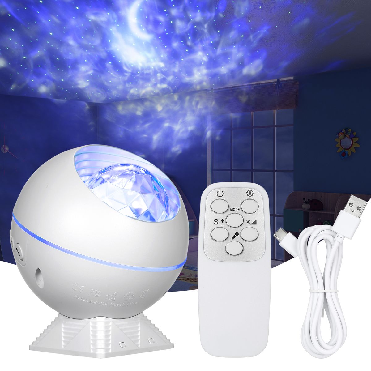 Shows up clearing pattern on the ceiling with green star lights and cloud moon, free to choose and combine according to your preference.