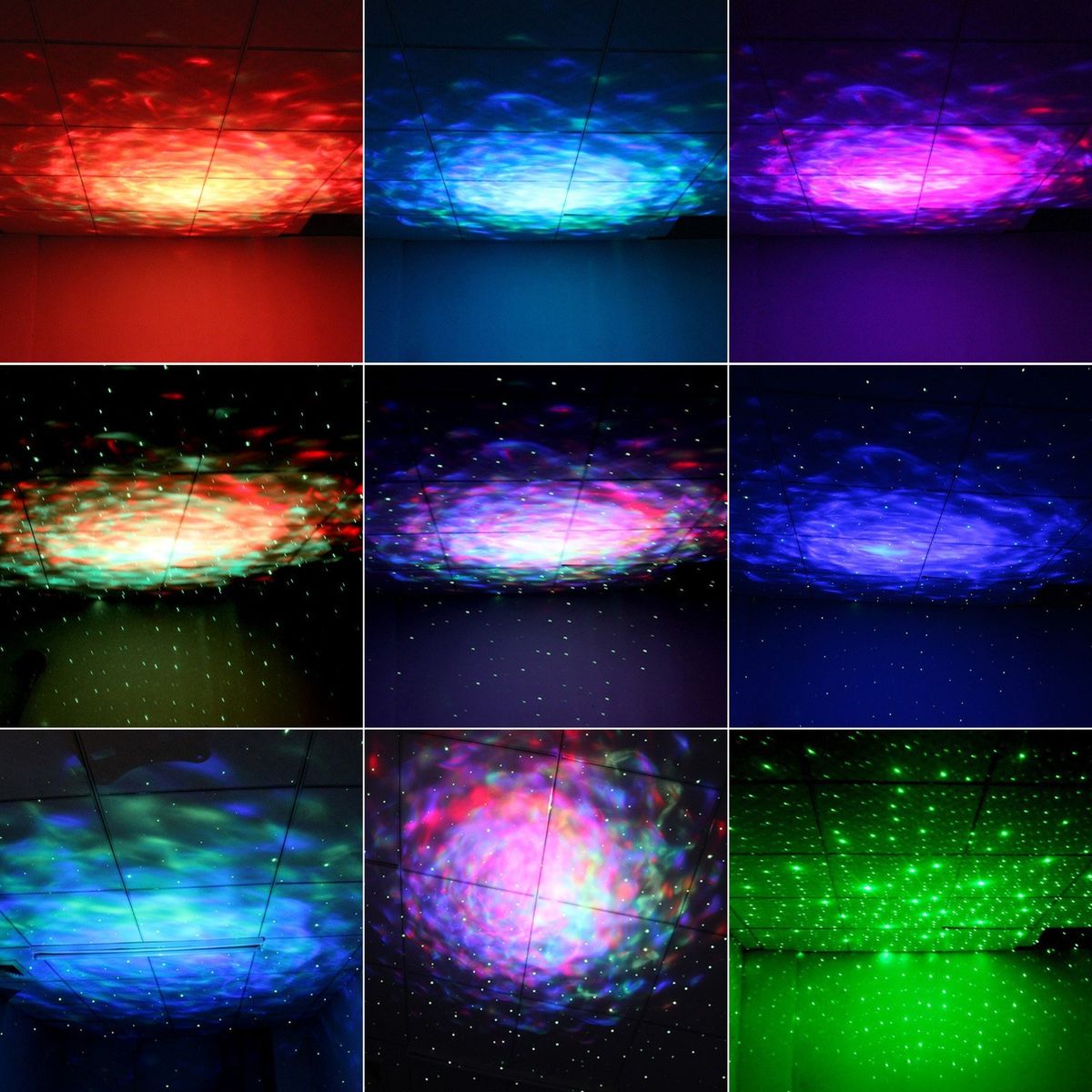This star projector displays both stars and cloud via different settings by remote control (auto, sound-activated, stroboscopic), creating a gorgeous and romantic starry nights.