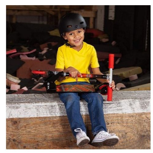 Huffy's kid scooters are designed to accompany your child playing around the neighborhood. Your child can quickly stash the scooter away by lifting a lever near the front wheel and folding the scooter in half. The scooter folds smoothly, so it can be carried by hand or in a bag. An aluminum non-slip deck provides great traction to keep your child's feet in place when gliding. Plus, the deck is fully decorated with graphics and decals! Stop with ease thanks to the rear fender brake. This scooter is recommended for children ages 5 and over, and a maximum weight of 150 lbs. Adjustable handlebar helps your child achieve the right fit. Plus, Huffy scooters are backed by a Limited Lifetime. Huffy, We Make Fun!