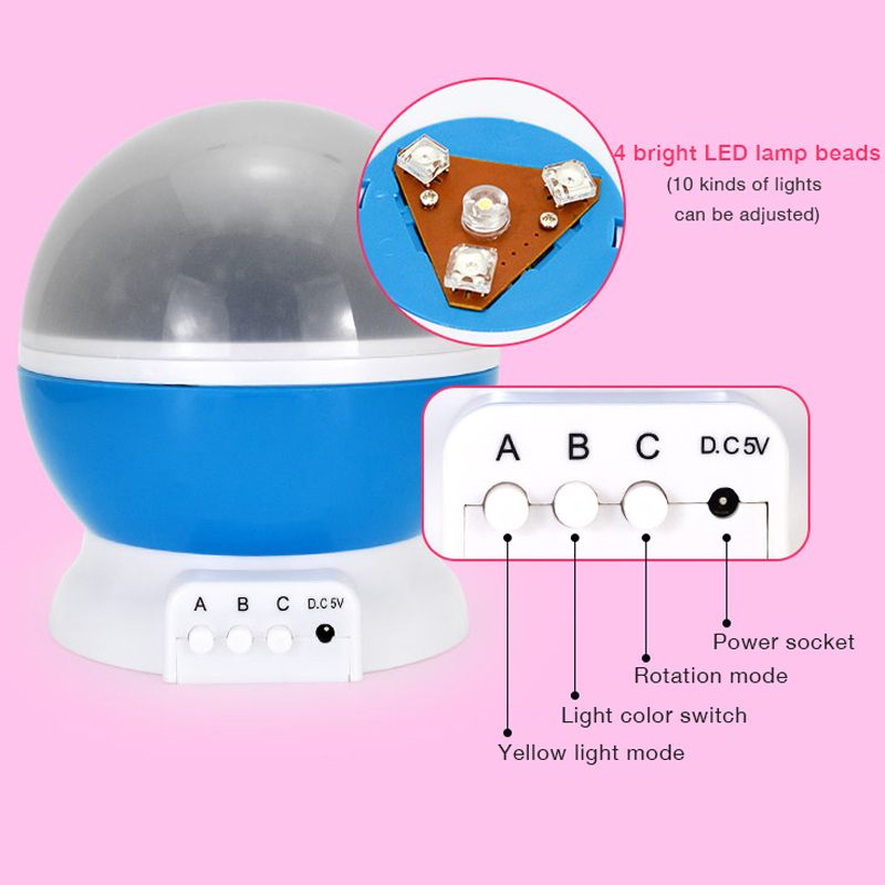 -Night sky projection on the ceiling and walls.