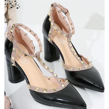 Buy Stars Metal Studded T-Bar Pointed Cover Shoe-BLACK in Nigeria
