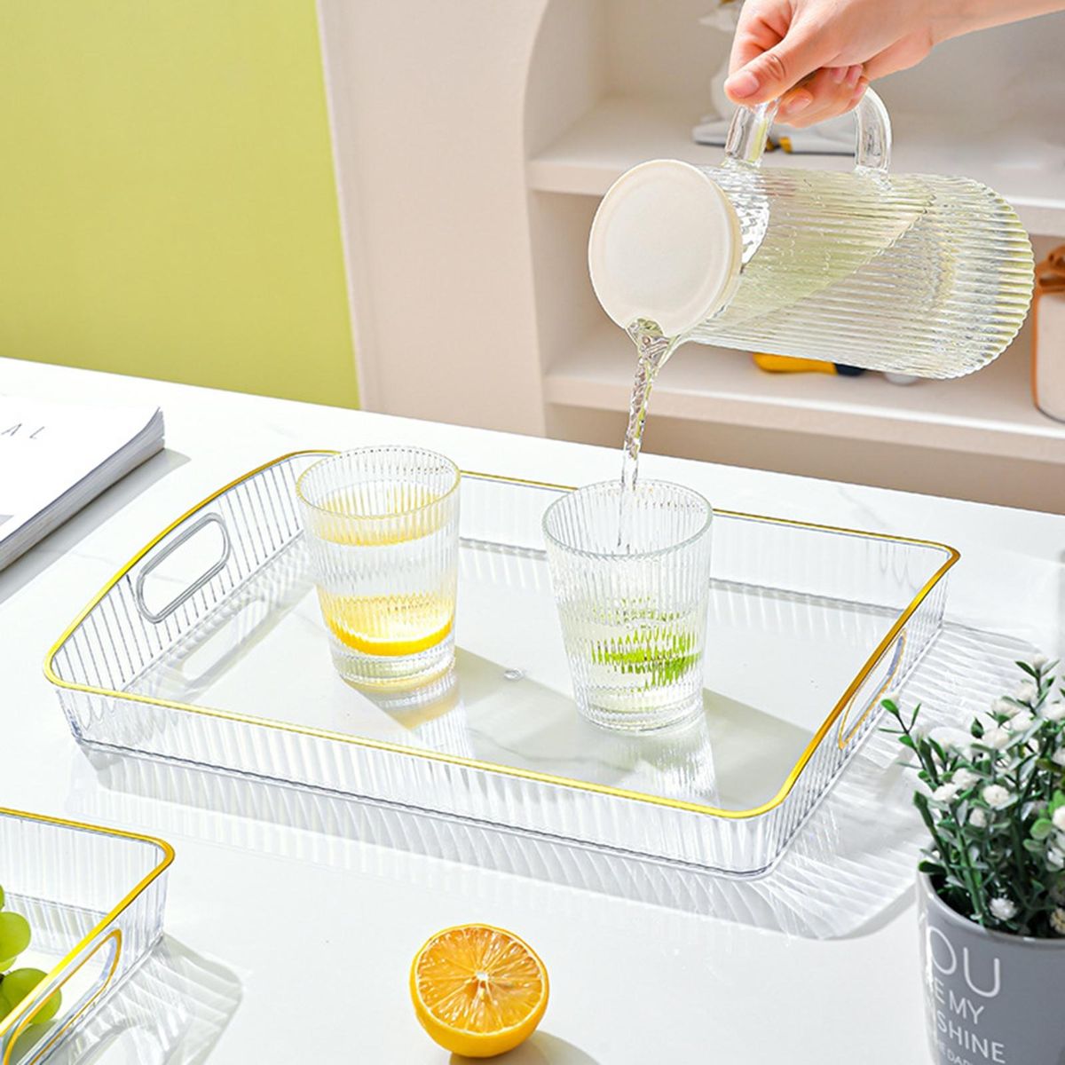 Buy Stationery Organizer Tray Transparent Thickened Serving Tray for Tea White in Nigeria