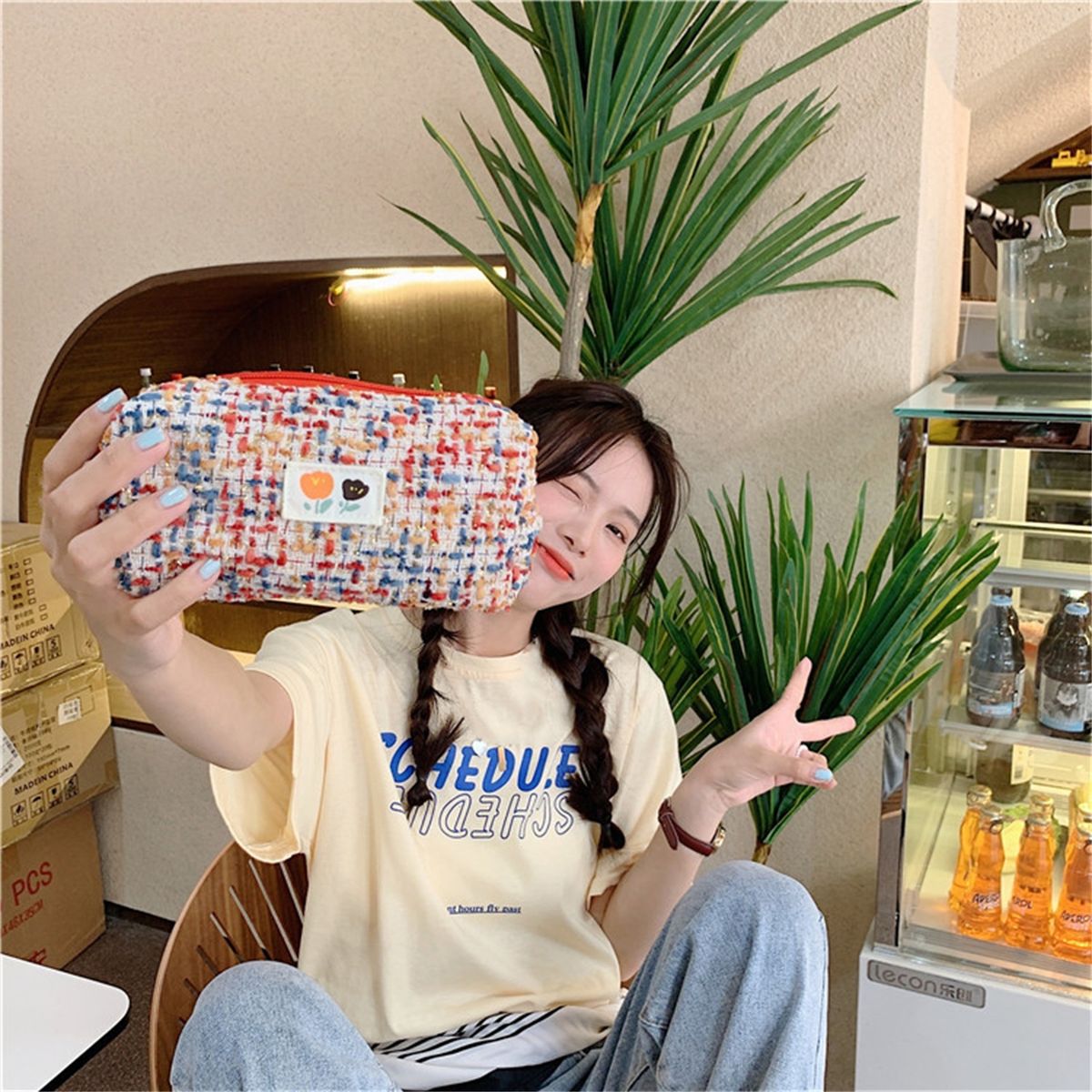 Featuring a handle design, the pencil bag is comfortable to grip and easy to carry. And the smooth zipper design makes it easy to open and close.