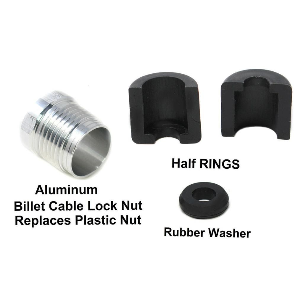New Steering Aluminum Billet Cable Lock Nut + Half Retainer + Rubber Grommet Kit