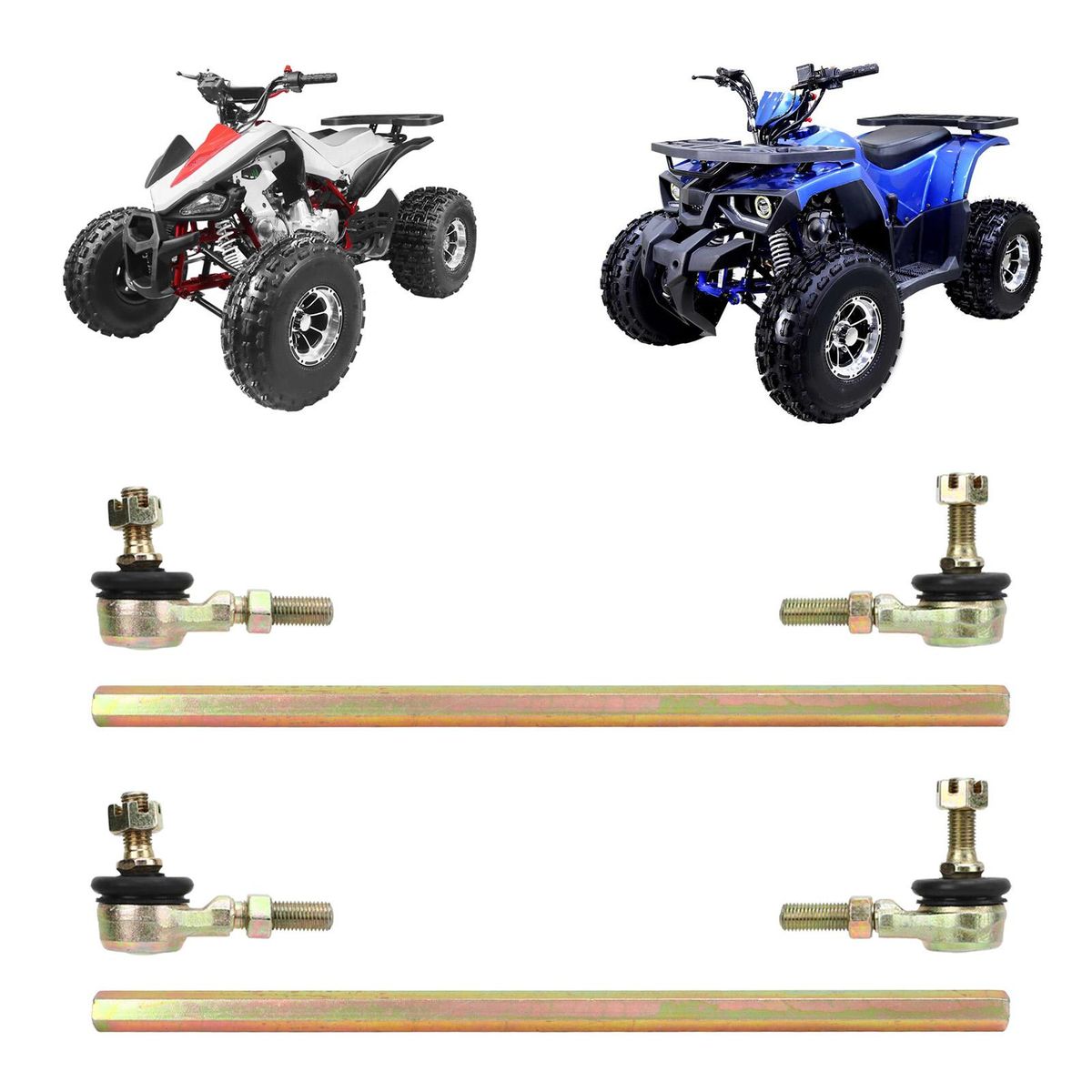Item Type: Tie Rod AemblyMaterial: Steel alloy and rubberStandard: 1 set (2 tie rods and 4 tie rod ends)Ball Joint Thread Size: Approx. 10mm/0.39in (M10)Application: This is a very good repment or repair for damaged and worn ball joints, providing better riding performance for your vehicleFitment: Fit for cc 70cc 90cc 110cc 125cc 1cc 200cc 2cc ATV Four Quad