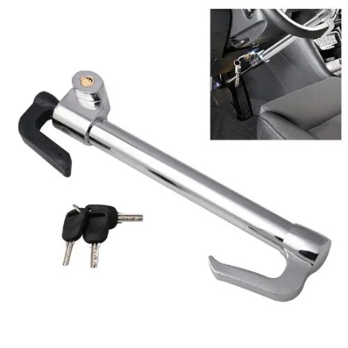 Our car anti-theft device offers unbeatable protection against theft, pry, saw, hammer, and Freon attacks. Made from high-quality materials, it's built to last and features a stylish and functional design. This universal lock is adjustable and fits any vehicle from cars to golf carts, making it a perfect solution for both automatic and manual transmission vehicles. It doubles as a safety hammer, providing additional peace of mind in case of an emergency. With just a few seconds, you can lock your car's steering wheel and clutch with its key, ensuring your vehicle is secured at all times. Each set includes 1 lock unit, 3 keys, and superior customer service to ensure complete satisfaction with your purchase. Get your car anti-theft device today and rest easy knowing your vehicle is safe and secure.