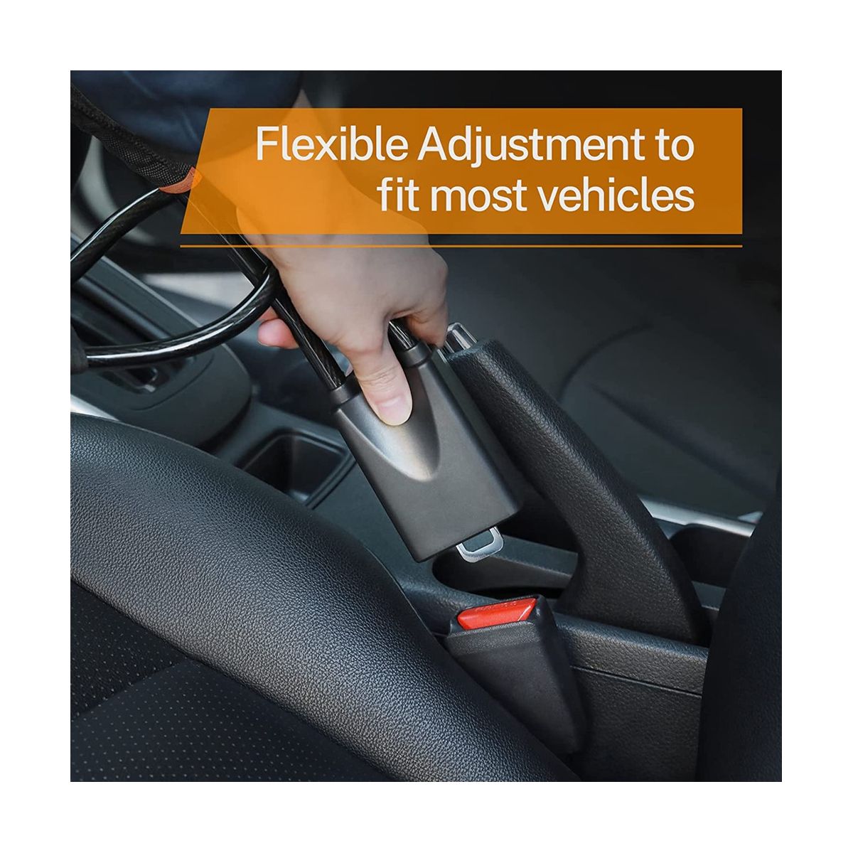 The universal steering wheel club anti-theft car device is suitable for all kinds of cars, trucks, SUVs and caravans with seat belts.
