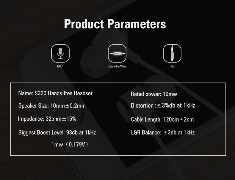 S320 Stereo Bass Headphone In-Ear 3.5MM Wired Earphones Metal HIFI Earpiece with MIC for Xiaomi Samsung Huawei Phones