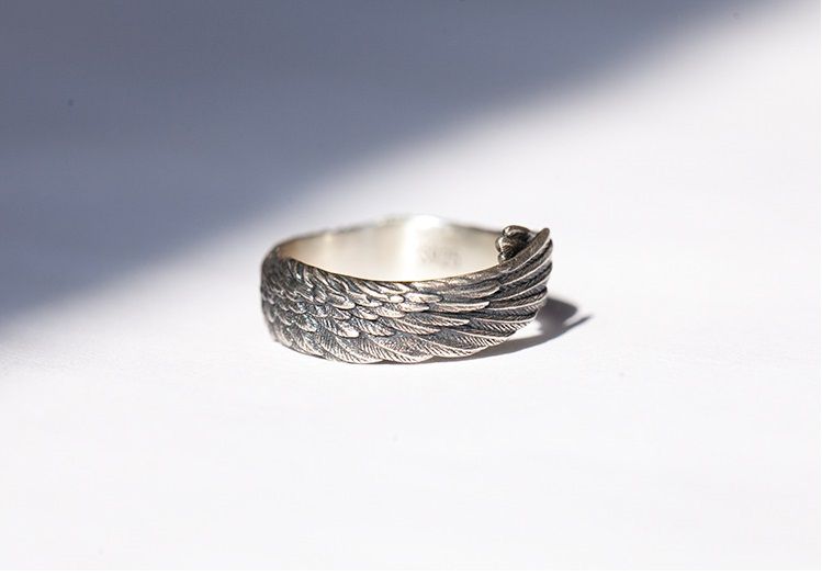 Angel Wings Feather Thai Silver Open Rings For Women Girl Female Open Rings For Women Couple Family Friendship Jewelry Gift