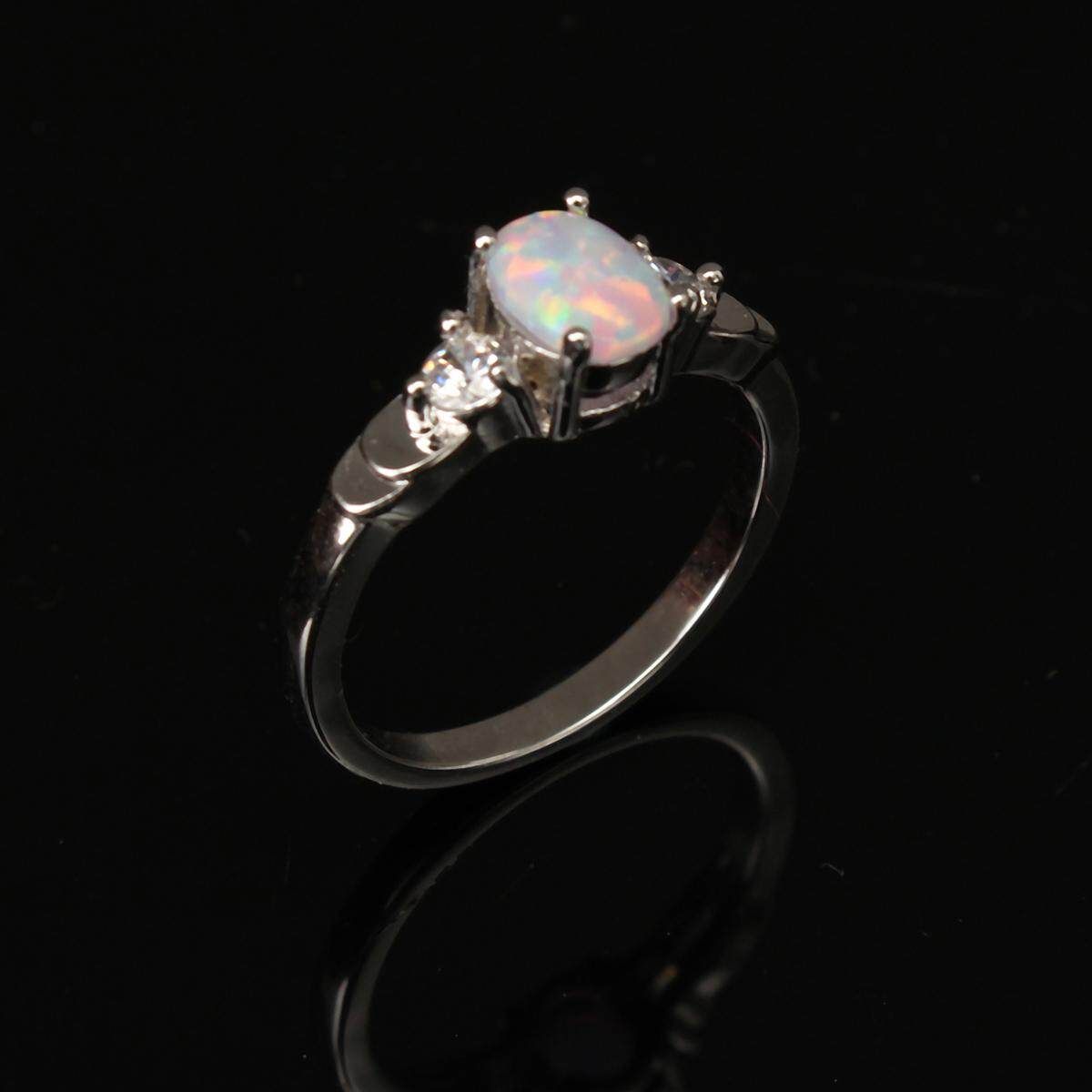 1X 7-9 Sterling Silver Plated Australian Opal Ring Wedding Engagement Propose
