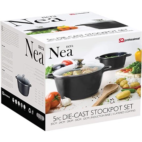 This Stainless Steel 6-Piece Cookware Set features a 9'' casserole pot with lid, 8'' casserole pot with lid, 7'' casserole pot with lid, 6'' casserole pot with lid, 6'' . This cookware set is suitable for all cooking surfaces. As it is made using stainless steel, this cookware set stays strong for years to come. The Stainless Steel 6-Piece Cookware Set has a thermal diffused base for fast heating. The handles are isolated from heat and offer a comfortable grip. The highly resistant glass lids with steam vents keep the moisture locked in and help cook flavorful meals.