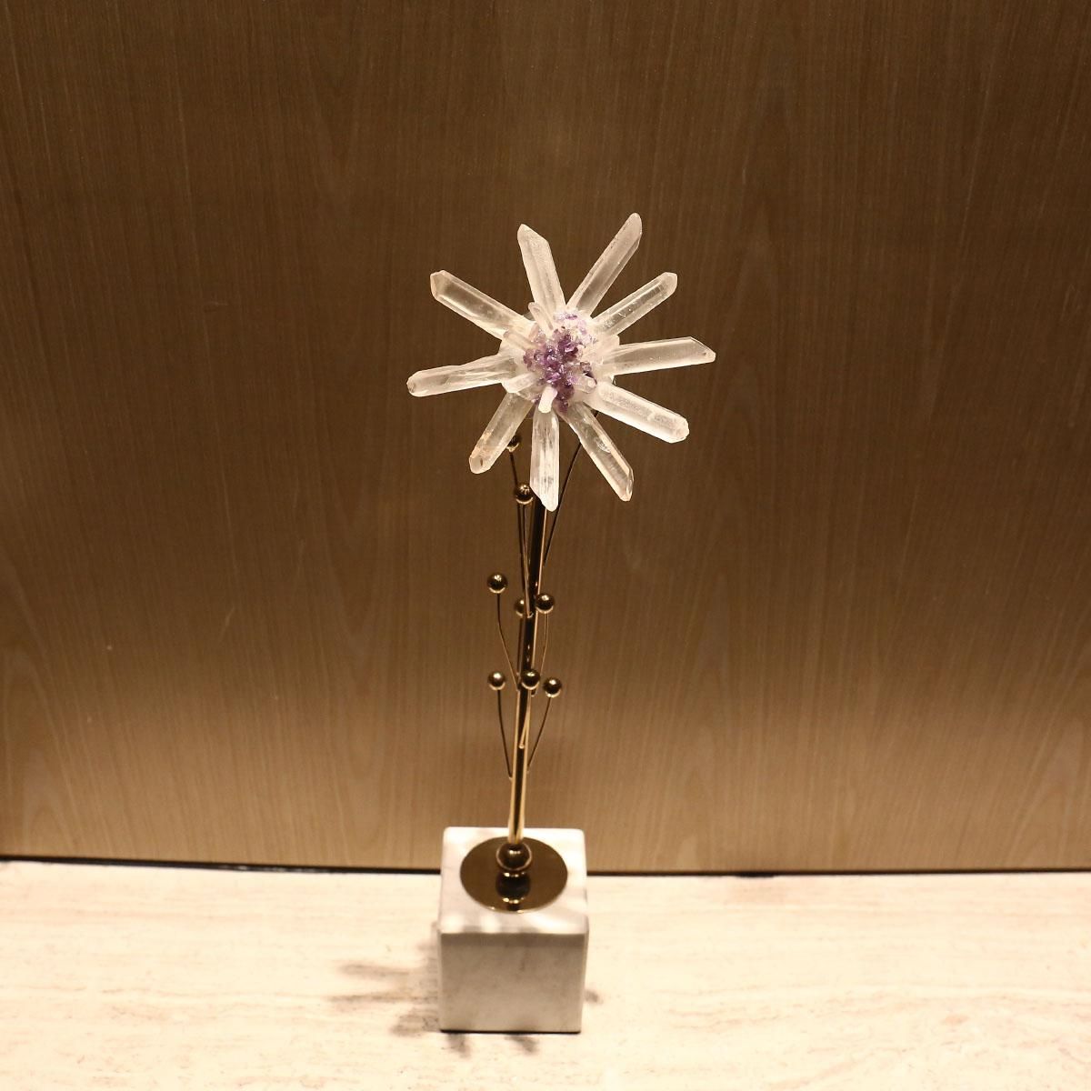 Buy Stone Flower Sculpture Abstract Sculpture Amethyst Stamen Golden Branches White Marble Base Post-Modernism Villa Decor Living Room Decor in Nigeria