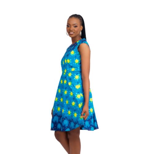 Buy Stoned Ankara Sleeveless Polka Dot Ladies Gown-Blue in Nigeria