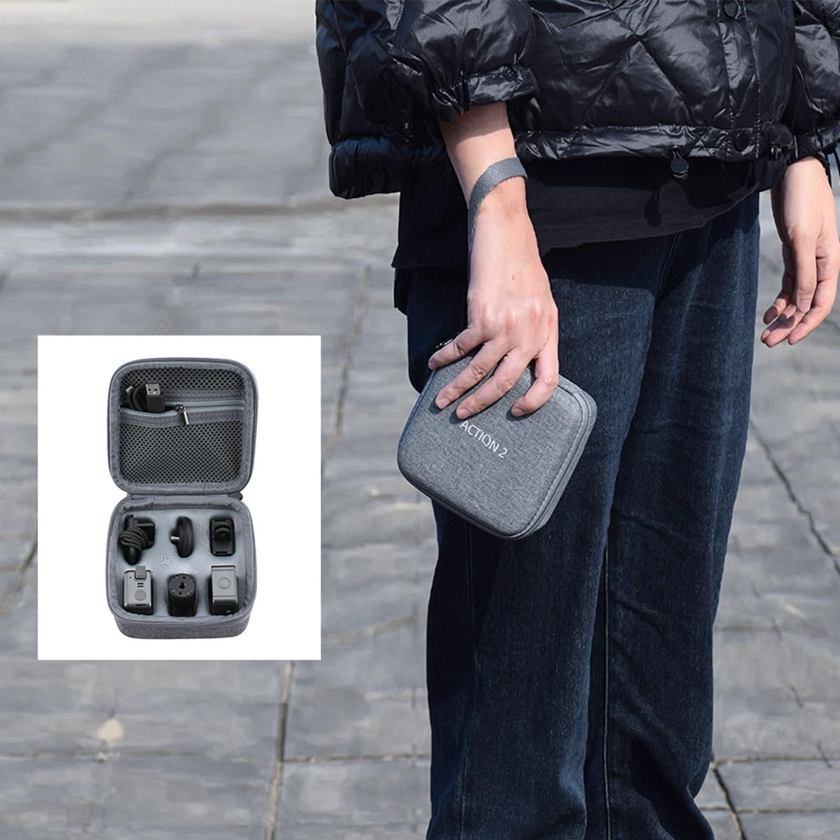 Material: NylonApplicable models: for ACTION 2Product size: 13.5x13.5x6cm