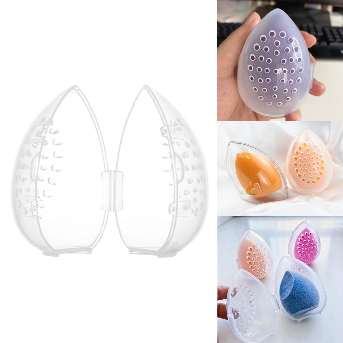 Transparent beauty sponge storage box.