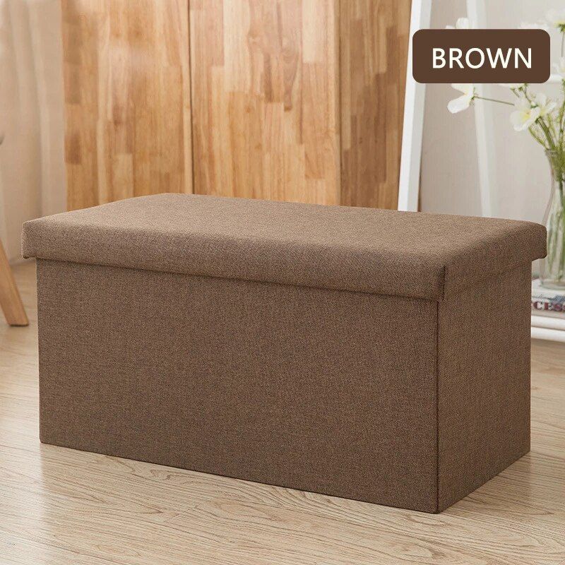 - SIMPLE STORAGE - Easily store this toy box storage ottoman when not in use by simply folding it up and tucking it away. When collapsed, this bench with storage boasts a compact profile that fits easily in closets and corners when you need extra space.