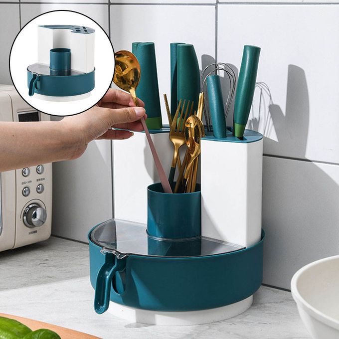 Kitchen Storage Rack;Kitchen Storage Rack Chopsticks Seasoning Box;360 Degree Rotation Multifunction Utensil Holder;Rotatable Cutlery Holder Drain Rack for Kitchen;Space Saving Flatware Bucket Countertop Accessory;Multifunctional Spoon Fork Organizer Rack