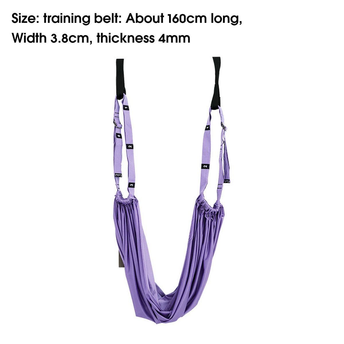 Item Name: Yoga Strap Material: Polyester cottonFeatures: Strong Load Bearing, Adjustable, ElasticSize Details:Training Belt Size: 160cm x 3.8cm x 0.4cm/62.99" x 1.5" x 0.16" (Approx.)Hammock Length: 150cm/59.06" (Approx.)