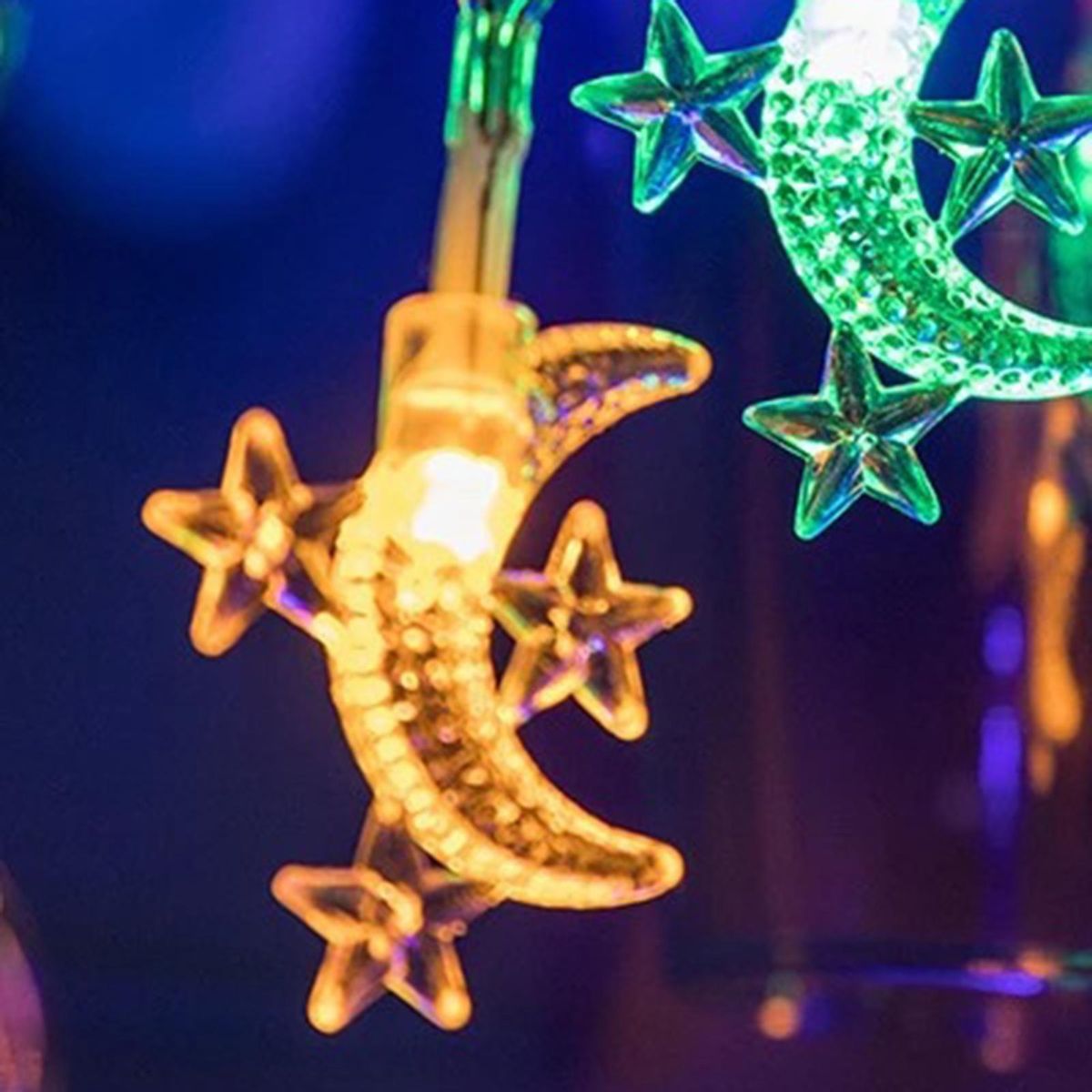 As a great addition to any holiday party decor, these LED string lights are designed with star and moon shapes. This product adds warm and charming atmosphere, making your ambiance more active and vivid. Low voltage power supply, safe to use.