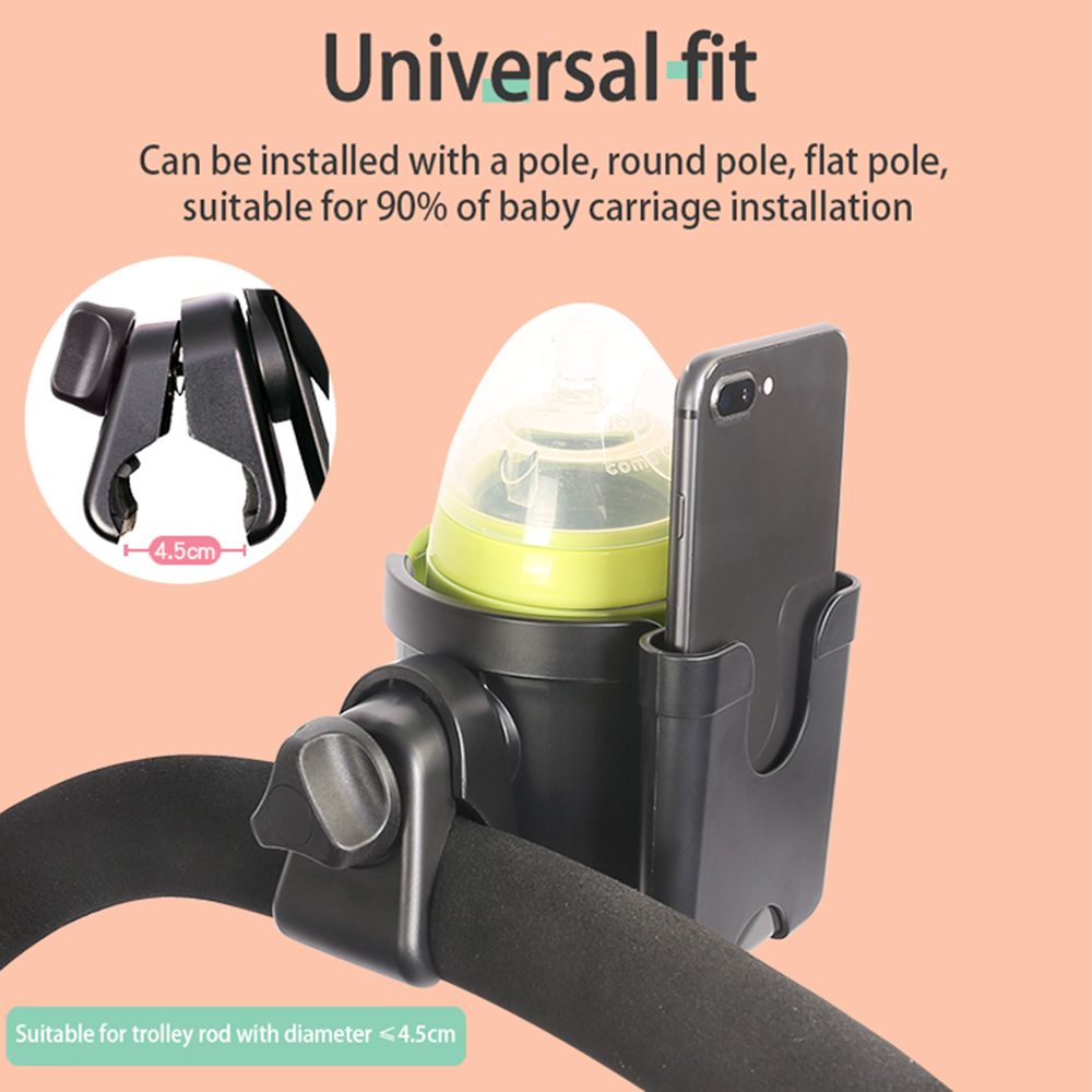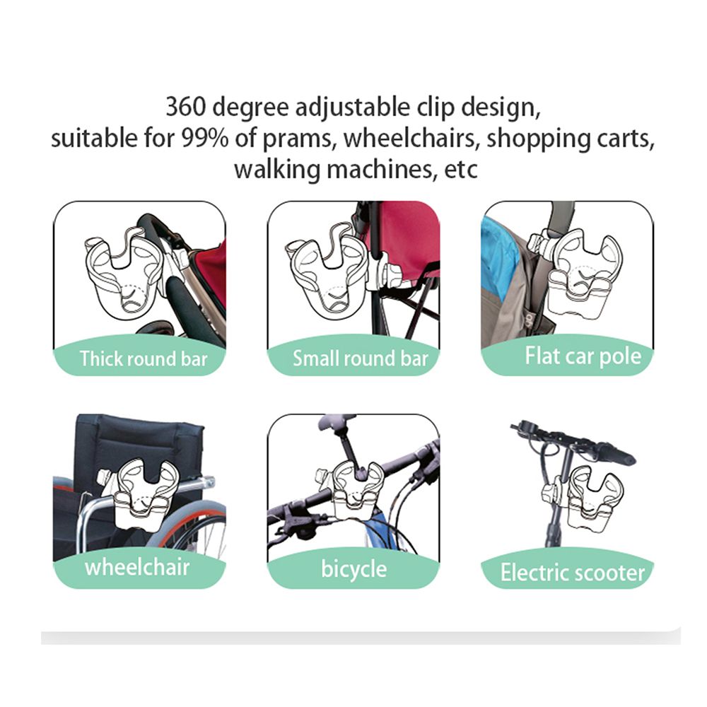- Universal cup holder fits different sizes of cups and bottles, suitable for strollers, bikes, trolleys, etc..