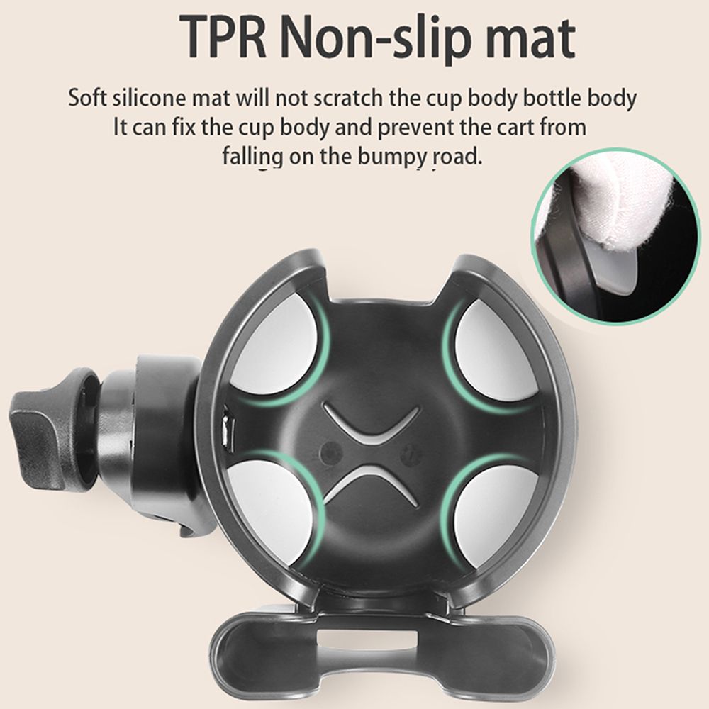 Universal cup holder fits different sizes of cups and bottles, suitable for strollers, bikes, trolleys, etc..