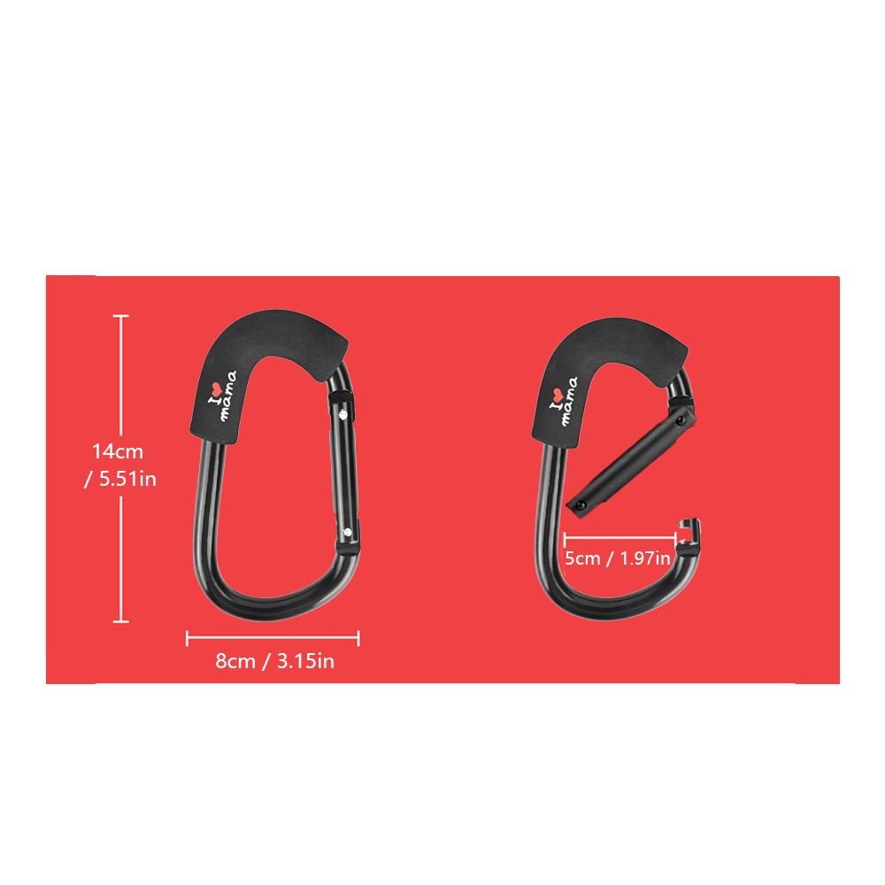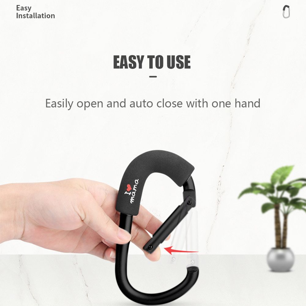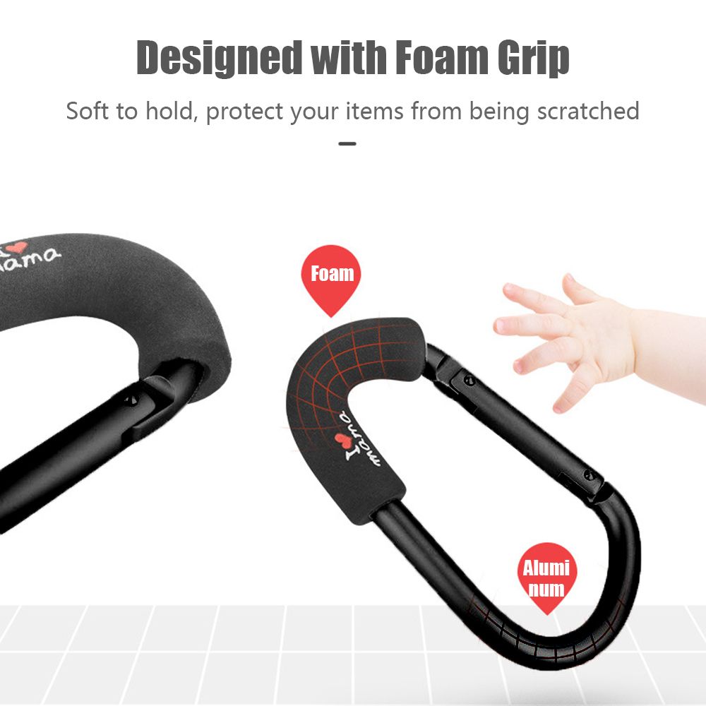Multifunction stroller clip, with foam handle and extra large opening easy to use and prevent your s being scratched. Made of quality aluminum for long-term use.