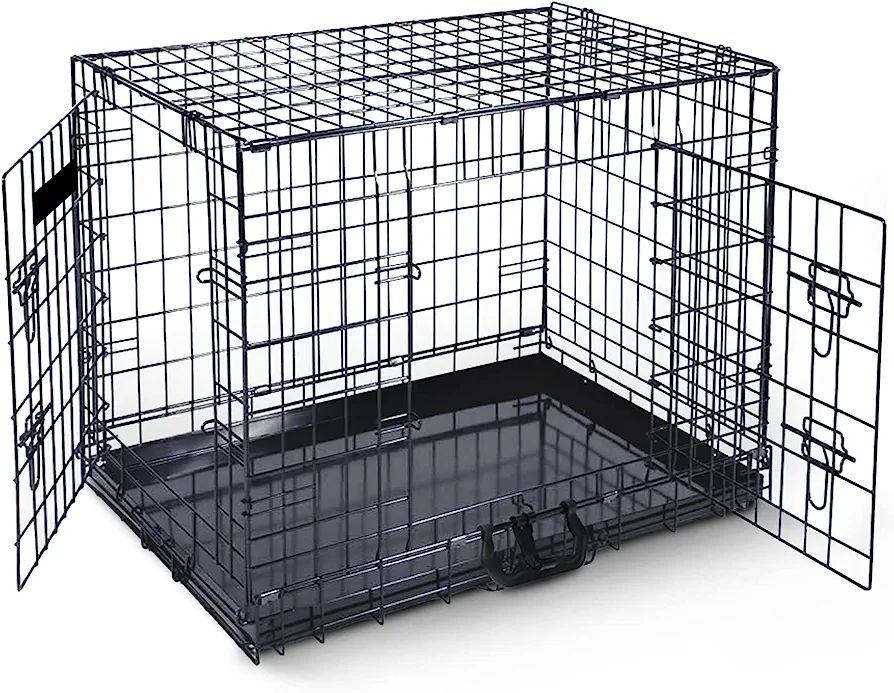 Strong Collapsible Dog Cage (Medium size) For American Eskimo, Chow-Chow, French Bulldog And Other Intermediate Dog BreedsThis durable Sure Crate offers a secure containment solution for less. Wire crates have dual latching doors to safely secure pets.It keeps pet clean as urine and faces drop dire toy into removable tray.Folds flat for easy storage when not in use or travel inSturdy Material,Stable Structure Our Pet Cage Is Made Of High-quality Metal Wire,Strong And Durable.,To Ensure That The Cage Is Firm And Will Not Be Easily Opened By PetsProduct Size The Total Size Of This Metal Cage Is 52x35x42cm(Length X Width X Height).61x42x50cm (Length X Width X Height) 70x50x60cm (Length X Width X Height).There Is A Tray At The Bottom To Protect The Pet's Feet And Make Them Comfortable IndoorsEasy To Assemble And Clean It Can Be Easily Set Up In A Few Seconds Without Any Tools.The Bottom Of The Tray Can Be Taken Out,Which Can Easily Clean Pet FecesSAFE & SECURE HOME:Heavy Duty Slide Bolt Latch Firmly Locks Dog Crate Door In Place,Keeping Your Dog Safely Inside Their Dog Crate cluding an easy-clean slide out floor tray and removable divider panel Assembly instructions included Material: Metal, plastic. Care: Wipe clean with a damp cloth or wash directly under running water