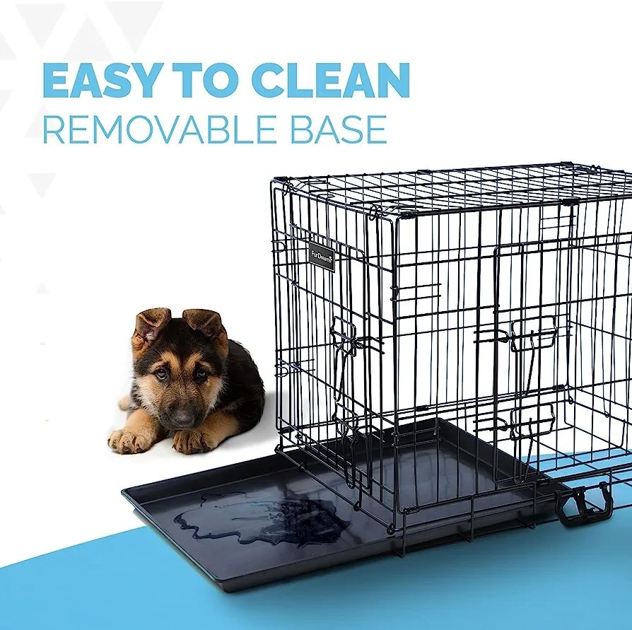 Strong Collapsible Dog Cage (Medium size) For American Eskimo, Chow-Chow, French Bulldog And Other Intermediate Dog BreedsThis durable Sure Crate offers a secure containment solution for less. Wire crates have dual latching doors to safely secure pets.It keeps pet clean as urine and faces drop dire toy into removable tray.Folds flat for easy storage when not in use or travel inSturdy Material,Stable Structure Our Pet Cage Is Made Of High-quality Metal Wire,Strong And Durable.,To Ensure That The Cage Is Firm And Will Not Be Easily Opened By PetsProduct Size The Total Size Of This Metal Cage Is 52x35x42cm(Length X Width X Height).61x42x50cm (Length X Width X Height) 70x50x60cm (Length X Width X Height).There Is A Tray At The Bottom To Protect The Pet's Feet And Make Them Comfortable IndoorsEasy To Assemble And Clean It Can Be Easily Set Up In A Few Seconds Without Any Tools.The Bottom Of The Tray Can Be Taken Out,Which Can Easily Clean Pet FecesSAFE & SECURE HOME:Heavy Duty Slide Bolt Latch Firmly Locks Dog Crate Door In Place,Keeping Your Dog Safely Inside Their Dog Crate cluding an easy-clean slide out floor tray and removable divider panel Assembly instructions included Material: Metal, plastic. Care: Wipe clean with a damp cloth or wash directly under running water