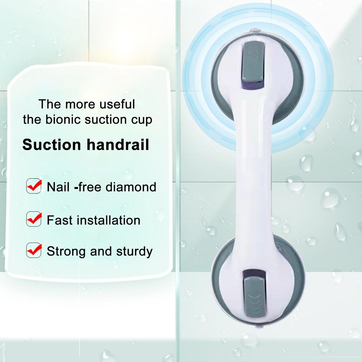 Our strong suction cup handle, the perfect solution for added safety and convenience in your daily routine. this versatile handle can be used in various places, making it a must-have accessory for every household.