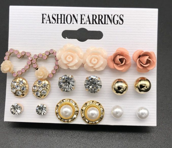 This is the best quality stud earings for all occassion. it can be worn during sports and parties. best quality at the a reasonable price. get this now while stock last. this is a set of 9 pair. It is made with Rhinestone Austrian Crystals. It Is very beautiful and trendy and indeed a beauty to behold. This set is definately a must have stud earings sets , Earring.Colour: Gold colour , earring,Material: Zinc AlloyStone: Crystal, RhinestoneOccasion: Sporta, Anniversary, Wedding, Engagement, Gift, PartyNickel/LeadType: Jewelry SetJewelry Set Type: Necklace, Pendant, Earring.Colour: Gold color necklace, Red colour pendant, earring,Material: Zinc AlloyStone: Crystal, RhinestoneOccasion: Anniversary, Wedding, Engagement, Gift, SetFeatures love heart pendant design, unique and fashionable.Crafted from carefully selected materials & finished brilliantly, this elegant stud earings set gets you that head turning gaze that you have always wanted at all occasions. This astonishing earings set is for women who desire to make a statement. So make the most of your appearance with elegance and style that keeps you noticed every time.Great Fashion jewelry. Highly amazing, and beautiful. A perfect match for different dresses. It just enhances your feminine beauty in every way. LOOK GOOD AND ATTRACTIVEWearing jewelry set will make you alluring, more eye-catching and glamorous. This graceful and beautiful fashion stud earring set is truly an eye-catcher which draws attention on you in any occasion. Give you a charming look and attraction.