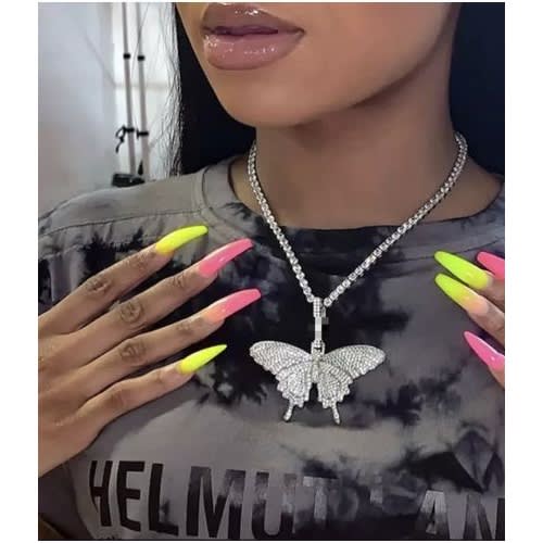 Buy Studded Necklace With Butterfly Pendant - Silver in Nigeria