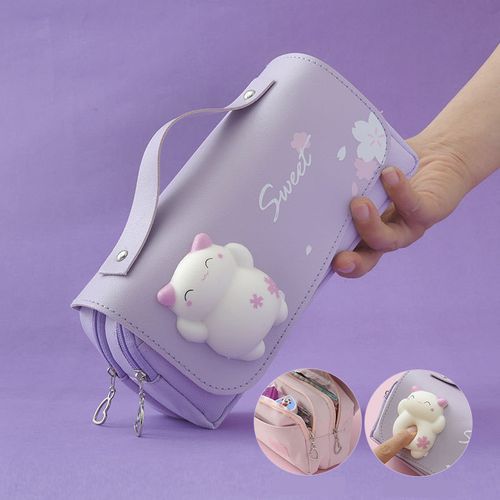 Convenient to carry and does not take up spaceMultifunctional, cute cat, decompression designPartition is reasonable, keep the desktop tidy, and cultivate students' hands-on organization abilitySafe material, no noise