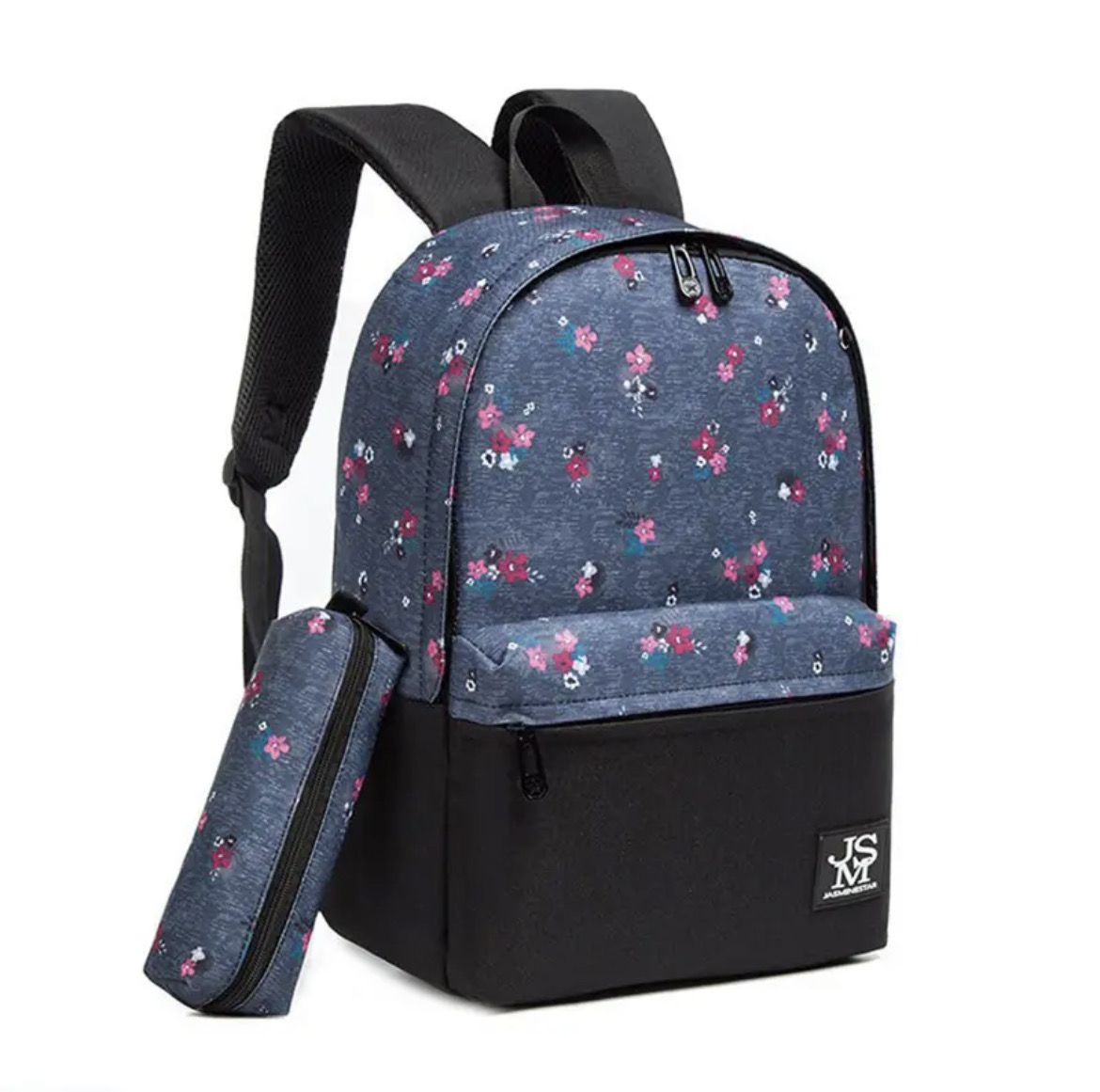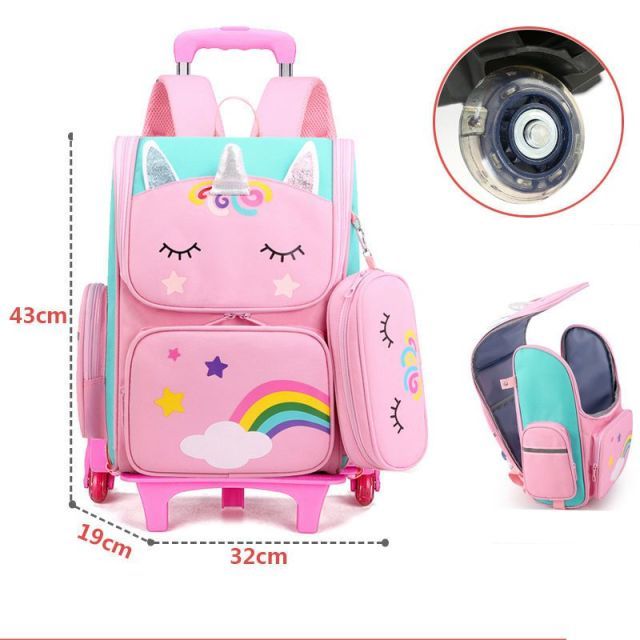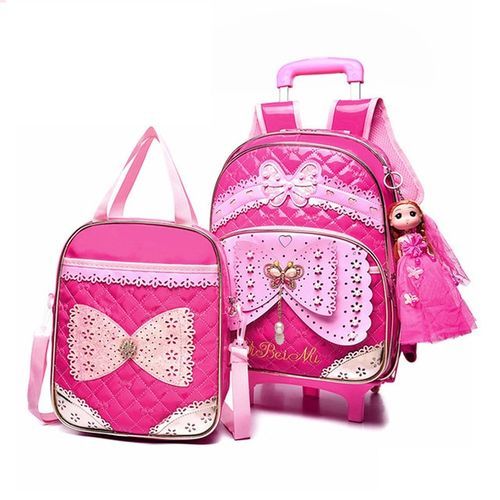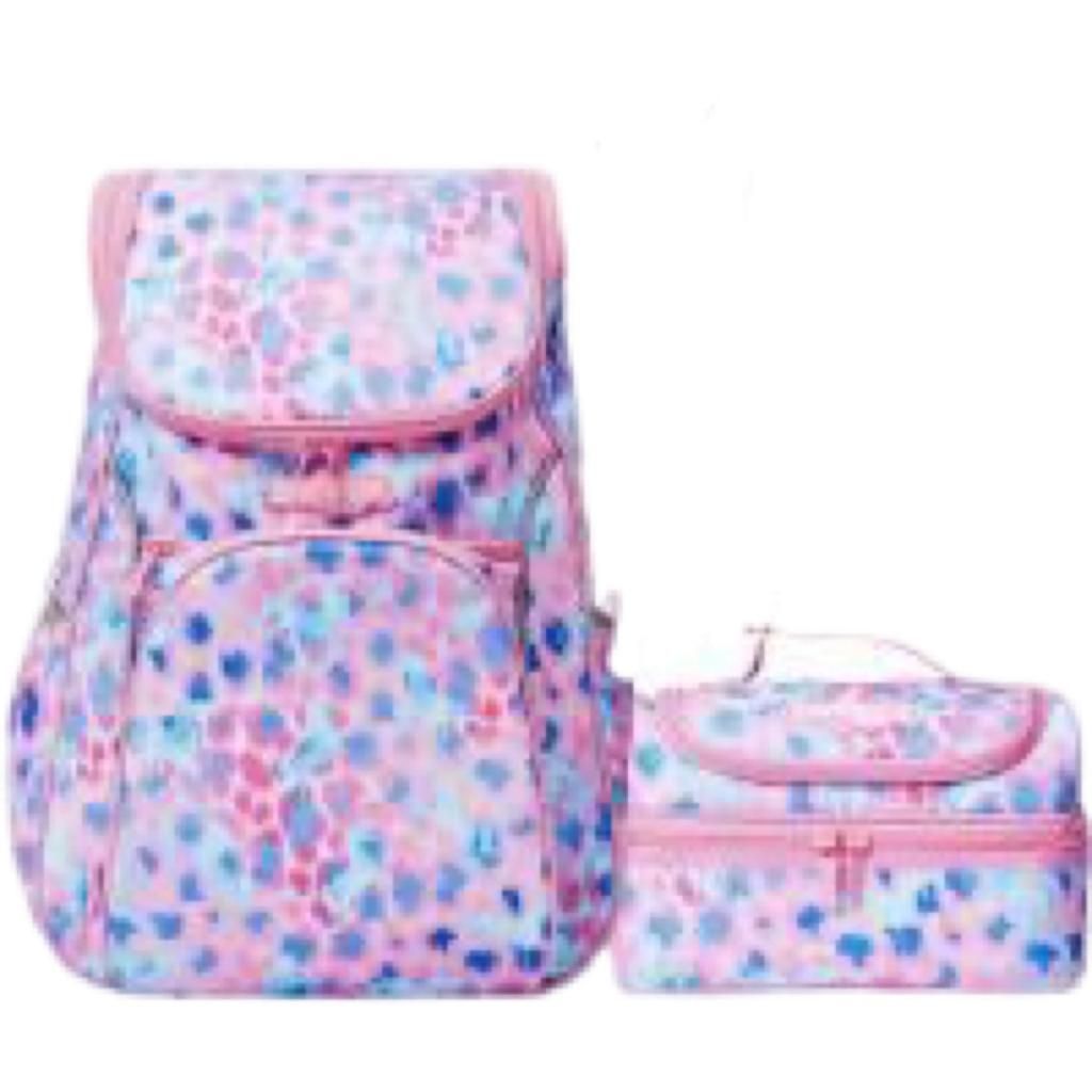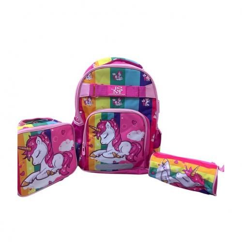 Girls Backpack Material: high density water repellent nylon fabric, polyester lining Structure: Main pocket with compartment and zipper pocket Front pocket with magnetic buckle Two side pockets Size: Backpack Size: (L*W*H)29cm/11.4"*14cm/5.5"*44cm/17.3" Package Content: 1*School Backpack 1*Lunch Box 1*Pencil Case