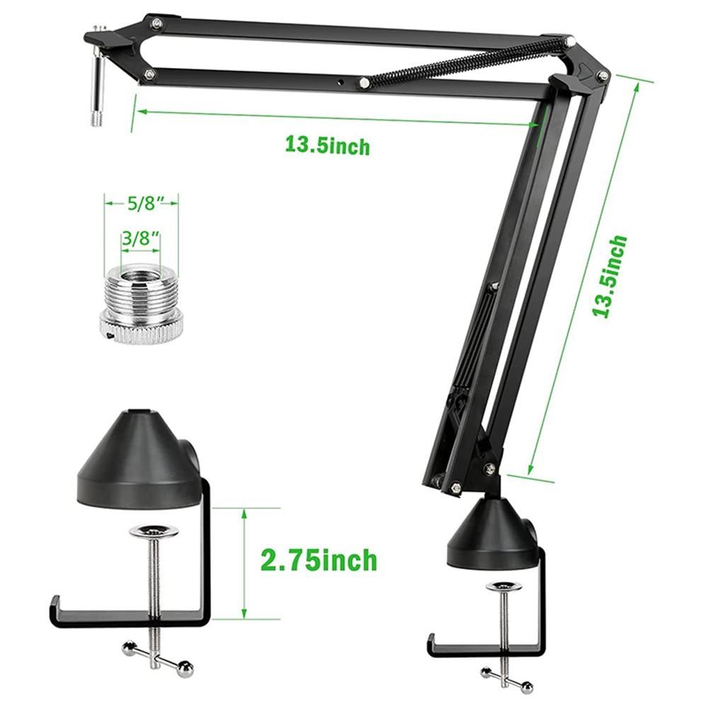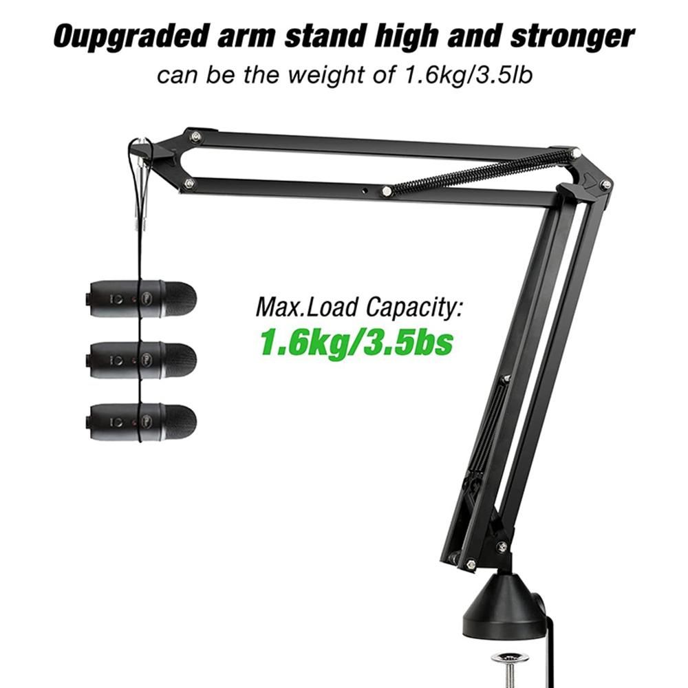 Detailed Information About The Product:[Upgraded microphone stand]: Microphone boom stand adopts a unique design: The center of gravity of the stand coincides with the center of the base, which can make the boom stand stronger load-bearing capacity.arm stand Can load 1.5kg/3.5LBS.