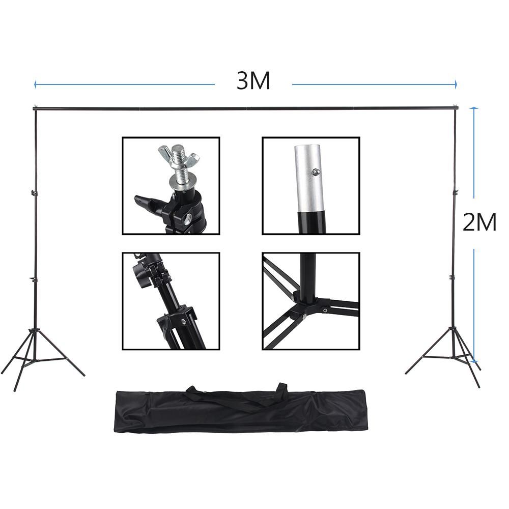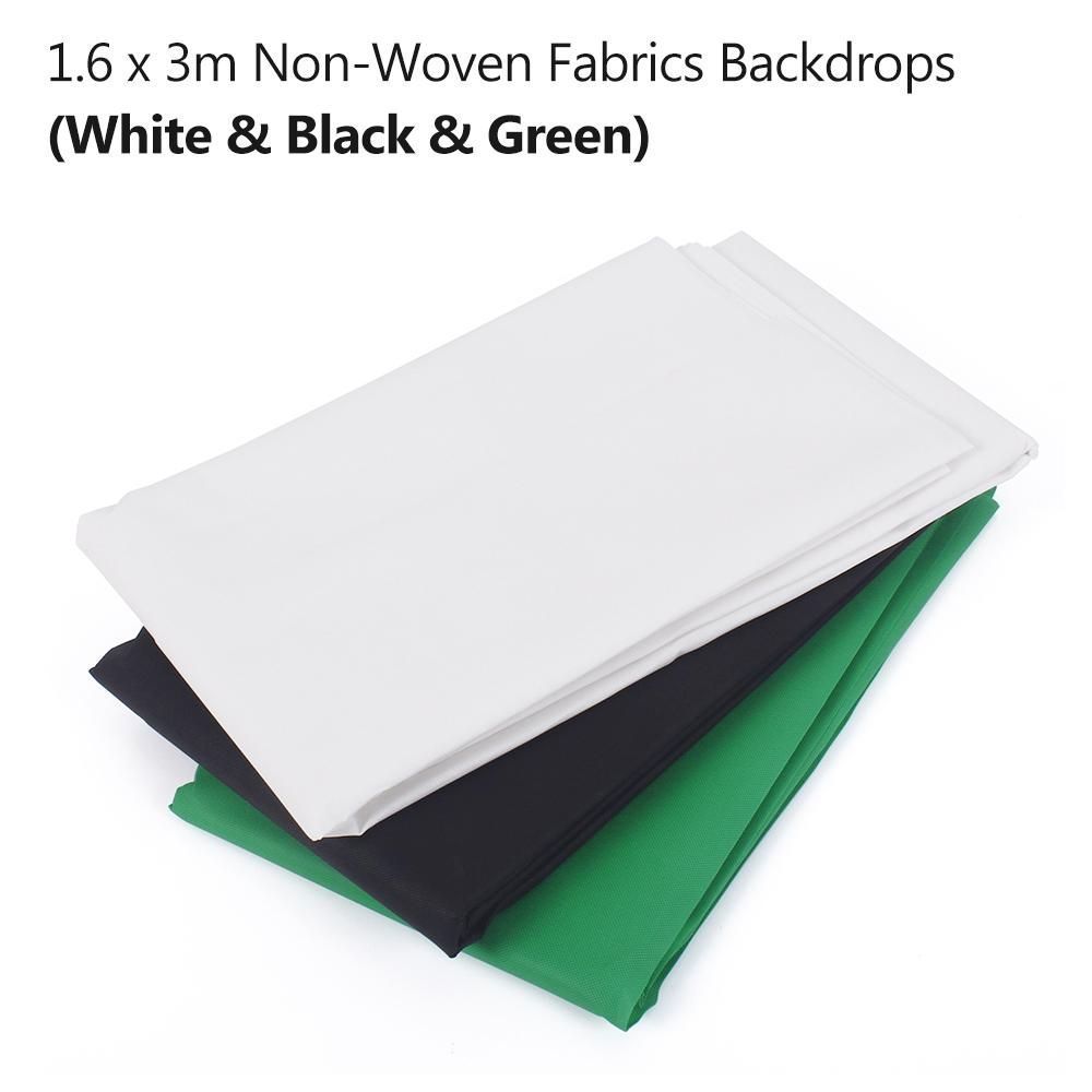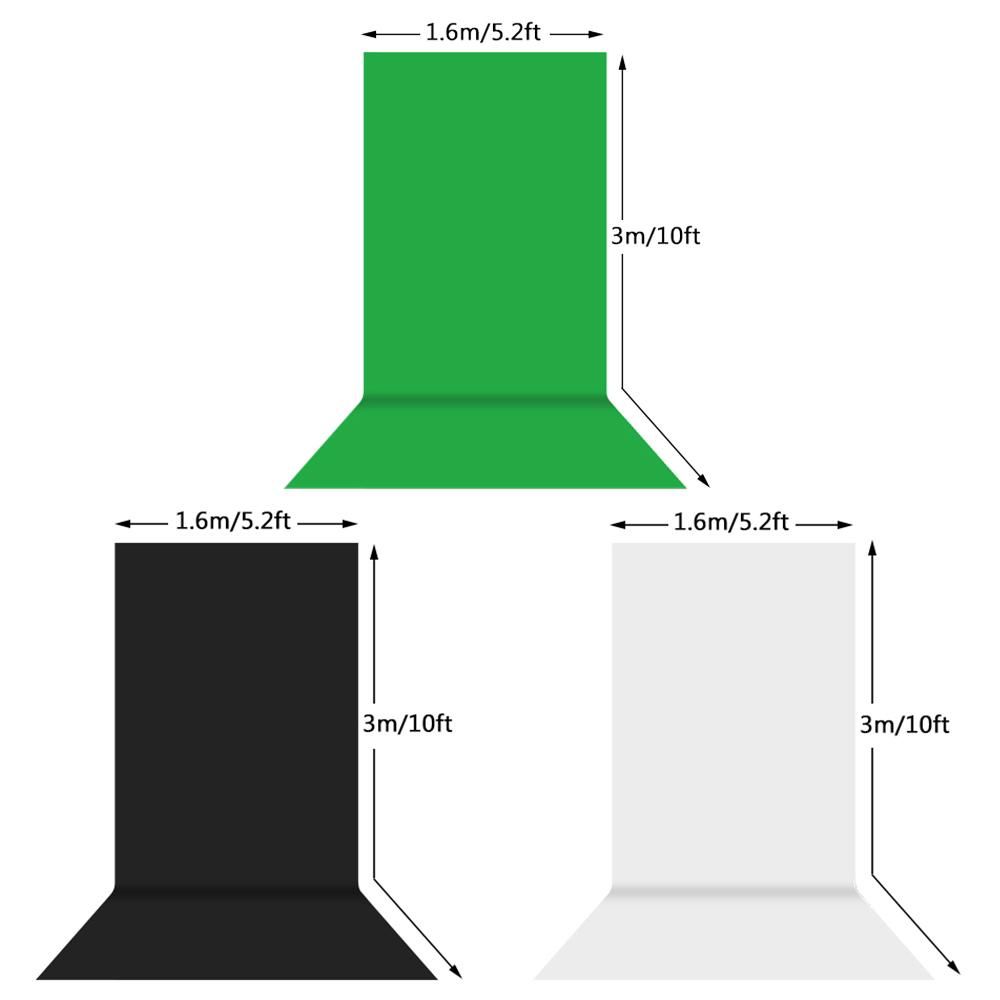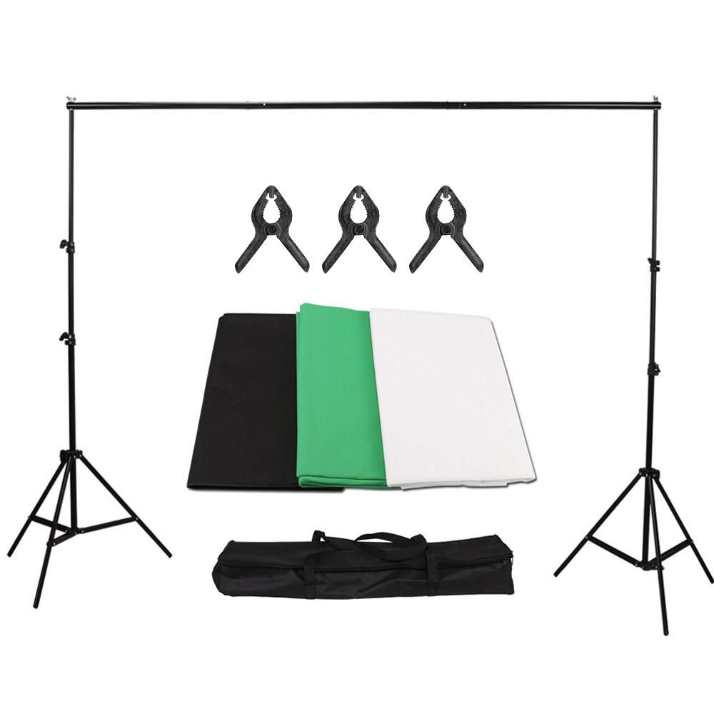 Buy Studio Photography Backdrop Kit with 2 * 3m/6.6 * 10ft Metal Stand Bracket + 3pcs 1.6 * 3m/5.2 * 10ft Backdrops Backdround(Black/White/Green) + 3pcs Backdrop Clamps + Carry Bag in Nigeria