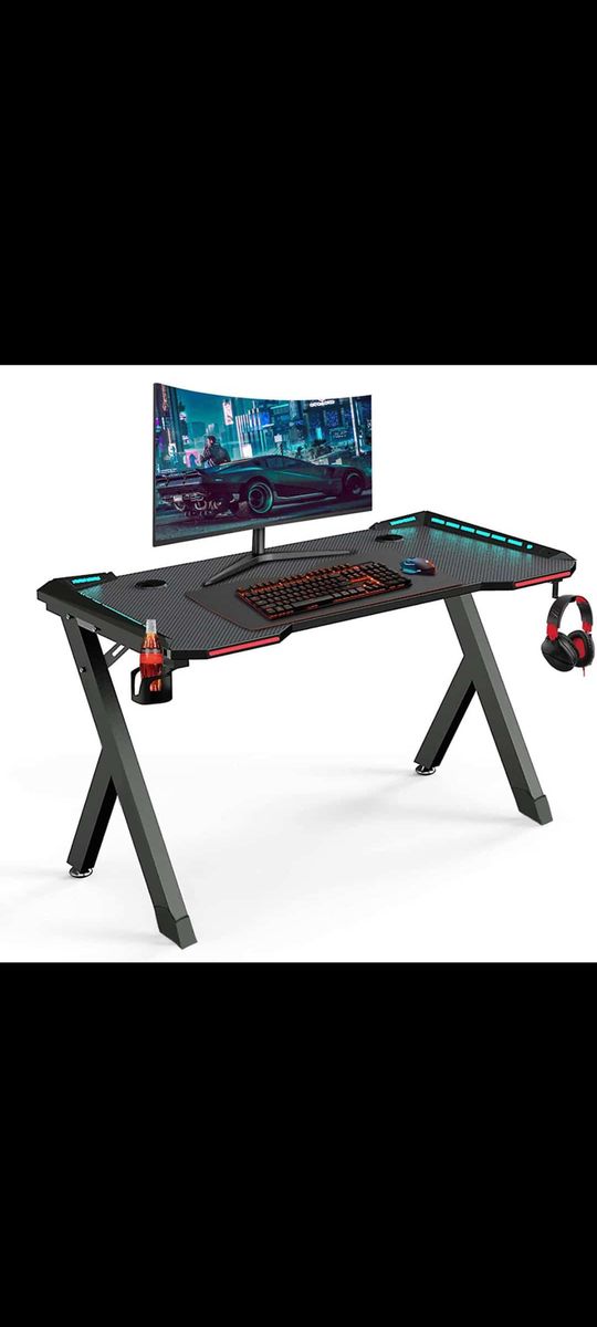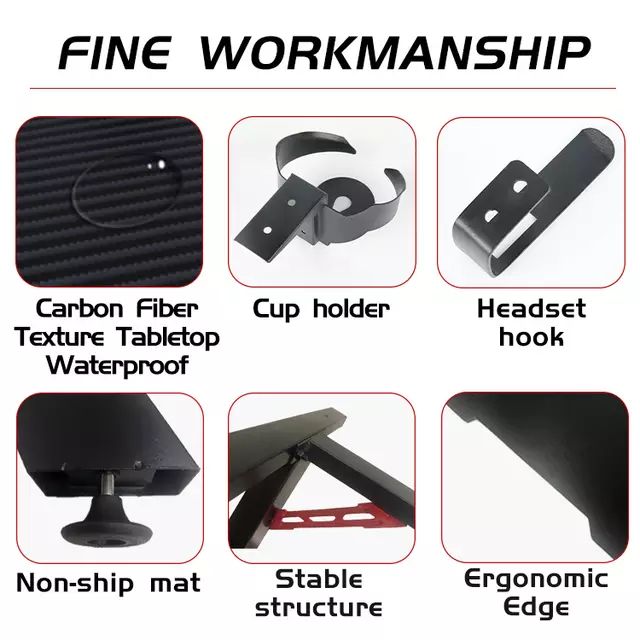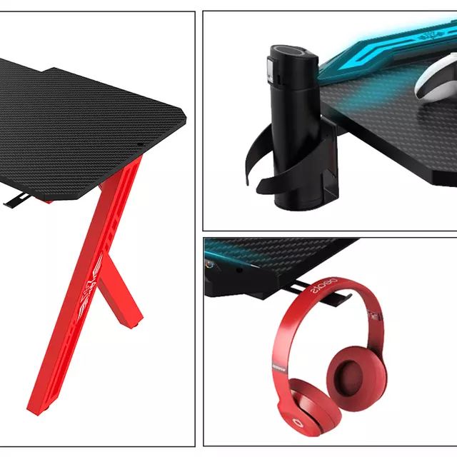 About the Game/studio tableNameWholesale 2022 Modern Popular Game Table Metal Youth Fashion Gaming Computer Table Pc DeskAppearanceModernMaterialHigh Quality Melamine Table Top+Steel FrameOEMAvailableFeature1. The gaming table comes with LED lighting. Plug the LED Lighting into your Gaming PC or Laptop with a USB.2. The gaming table comes with plenty of added features to help you have a better gaming experience.Description: 1. Stylish appearance and ultimate equipment allows you to get rid of the shackles, immerse yourself in the game, enjoy the purest joy from it! 2. The thick desktop and Z-shape steel frame ensures durability and sturdiness. The leveling feet keep the desk stable no matter it is on carpet or hardwood. 3. Multi Function: Comes with a cup holder, a headphone hook, cable holes, making everything in a arm reach, keeping all the stuff organized neatly