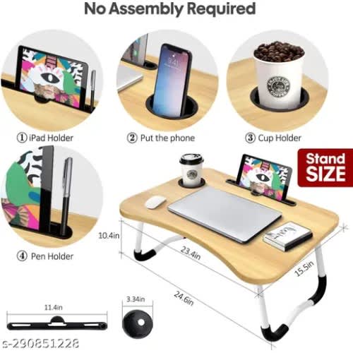 Multipurpose Wooden Foldable Laptop Table With Cup Hole
