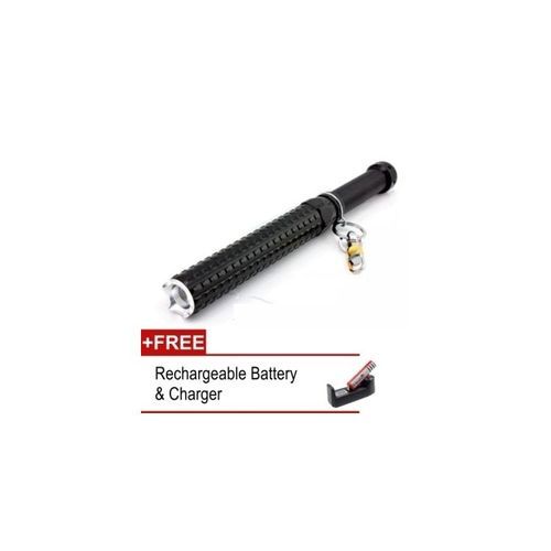 HIGHLIGHTSHeavy Duty MachinedAluminumKnurled Grip HandleSize : (Adjustable Size 32cm to42cm)Three modes: Strong, Normal& Flashing (Switch on tail end cap)Flashes range 200 - 500 metersawayRunning Time: 5 - 15 Hours(approx)Weight: 380 gramMaterial: AluminiumBattery : 18650 (RechargeableBatery) Charger : FREE