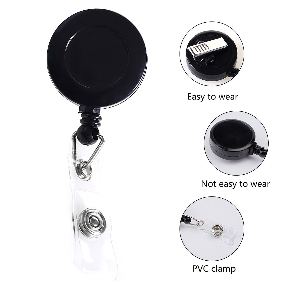 Our durable and reliable retractable badge reel with a sturdy card clip. made of high-quality abs plastic and stainless steel, this badge reel is strong and built to last. the card clip on the back tightly holds onto pockets, collars, belts, and backpacks, ensuring that the badge reel holder stays securely in place.
