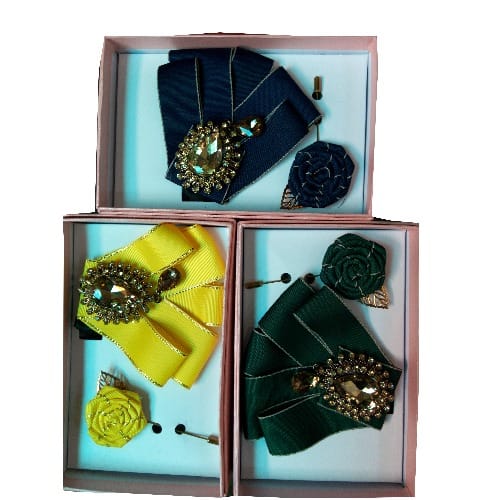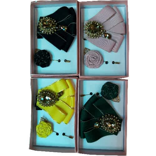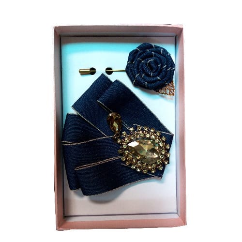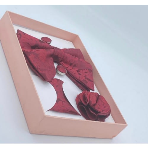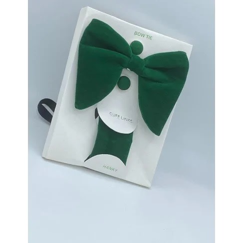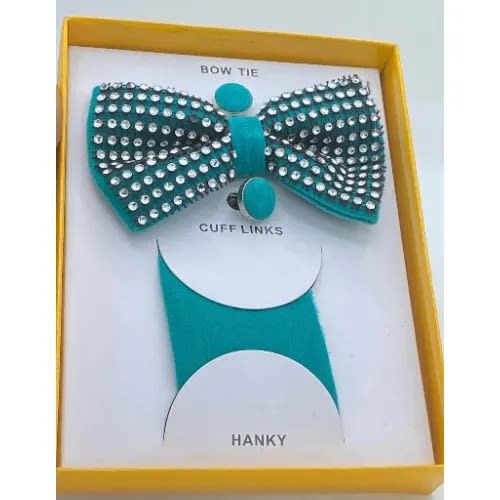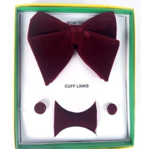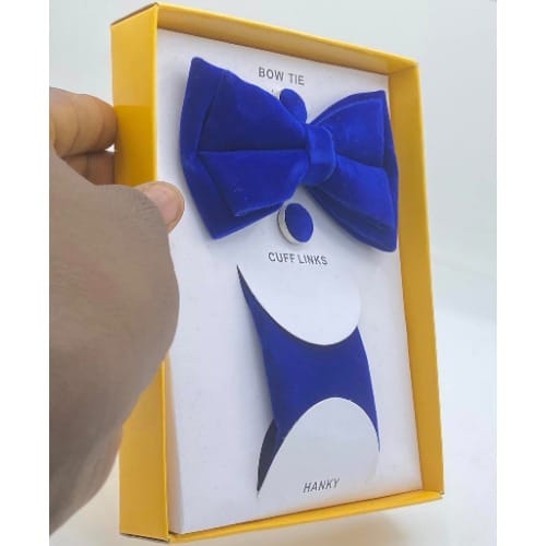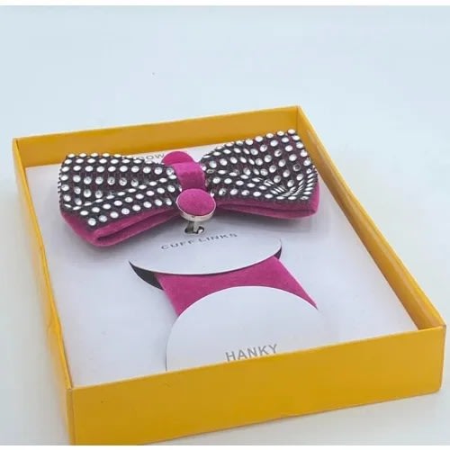 Unique men's stylish Suede 3-In-1 Bow Tie, Cufflinks Pocket square
