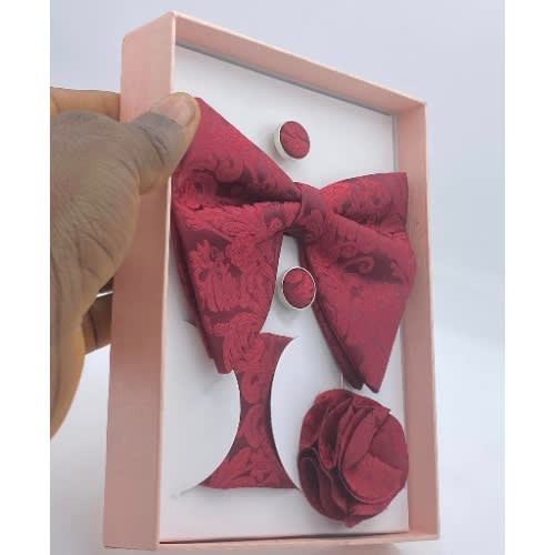 Unique men's stylish Suede 4-In-1 Bow Tie, Cufflinks ,Lapel Pocket square