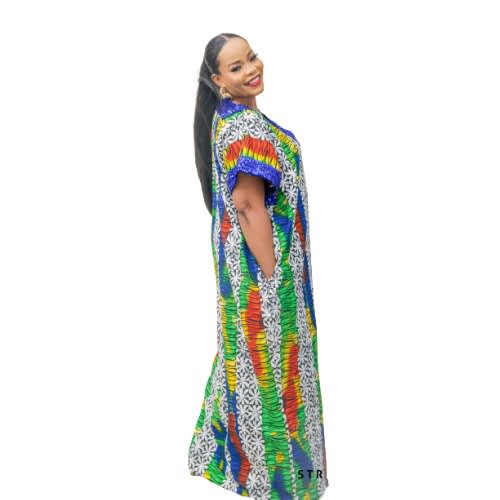 DRESS TOMIKE KAFTANA woman's got to reward herself every now and then for all the plenty work she always puts in, and Dress TOMIKE is the best option.It is an original Fully stoned Dry Lace and Ankara combo designed by FunmyClothing for you.A very bright and beautiful dress, that speaks elegance and Class. This kaftan comes with an Inner and Head-tie.
