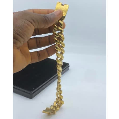 Buy Stylish Cool Ski Cuban Men's Link Bracelet Gold 22mm in Nigeria
