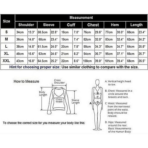 - Size: There are 5 sizes聽 (S, M, L, XL, XXL) available for the following listing. please allow 1-2cm differs due to manual measurement, thanks (All measurement in cm and please note 1cm=0.39inch)