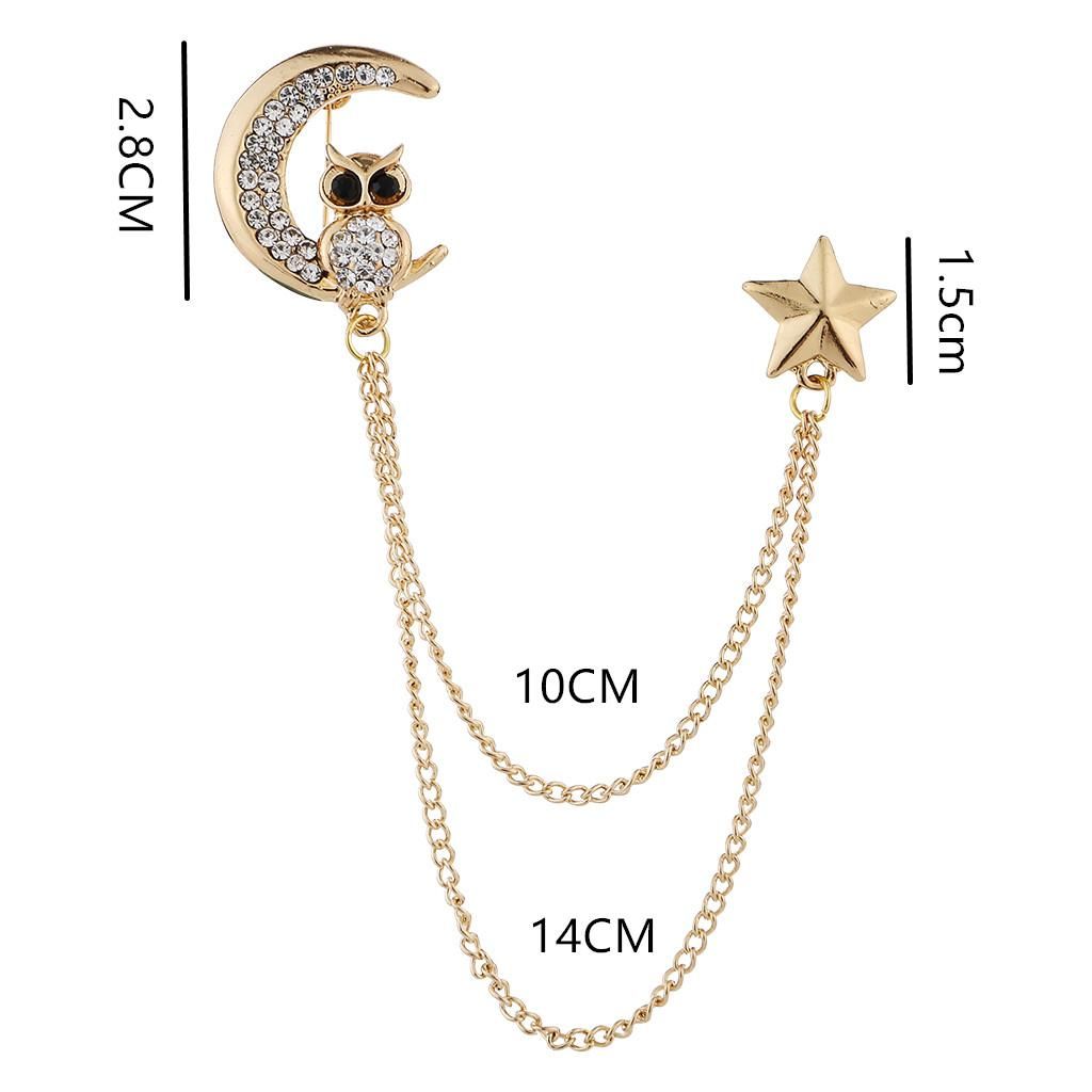 Made of quality alloy , sturdy and durableOwl with tassel chain, elegant and full of charming A nice decoration on clothes, stylish and attractive Can be decorated to suit, banquet clothing, clothing embellishment, wedding, etc.A fashionable and perfect gift. suitable for party, anniversary, graduation, birthday or any special occasions.
