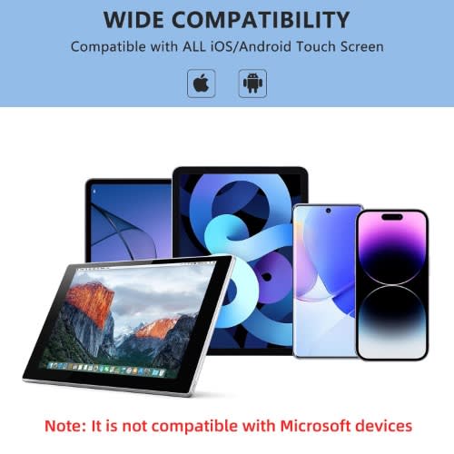 Active This stylus pen for touch screens is compatible with mainstream capacitive screen devices that come with iOS, Android, and Microsoft systems, including iPad, iPhone, Samsung, and other smartphones and tablets.